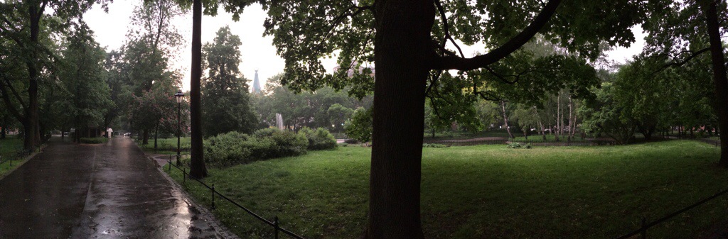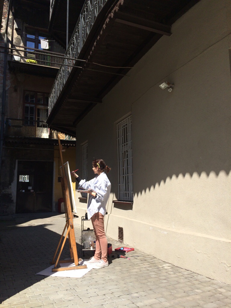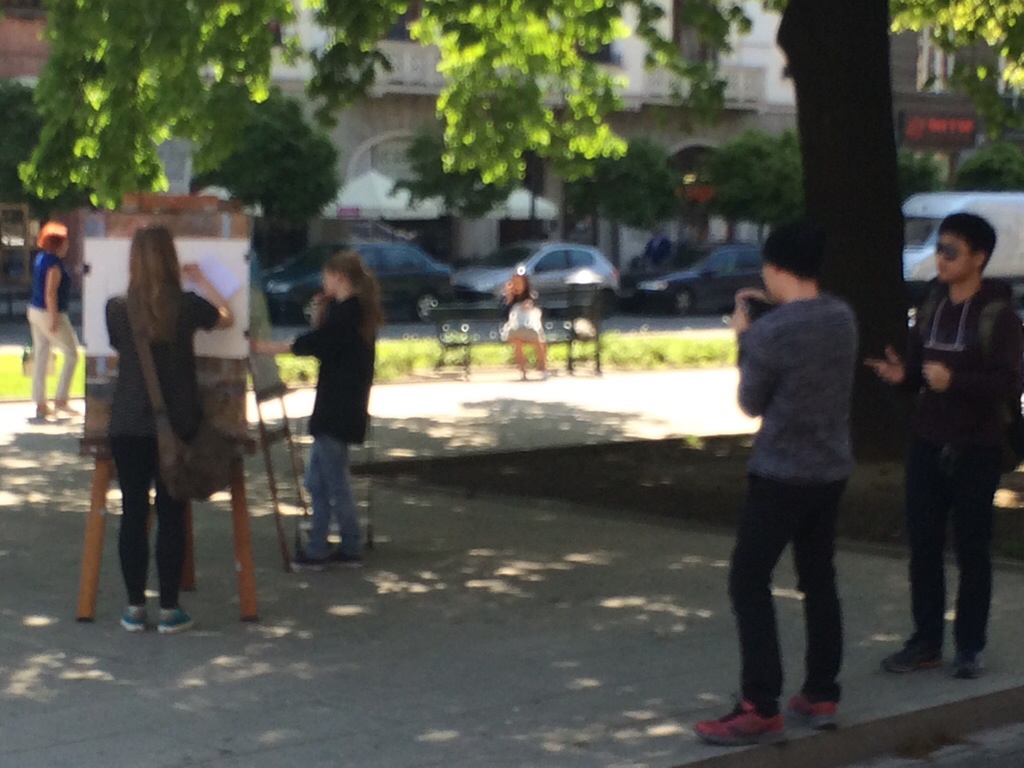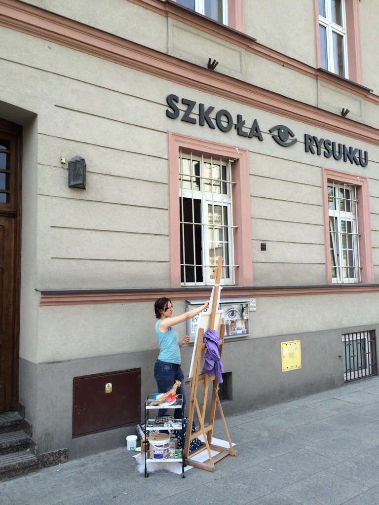 Za oknem pracowni ulewa, a po niej Plac Matejki spłynął malarskimi barwami odbić w kałużach. To pewnie sam Matejko chlapnął z góry swoimi farbami.