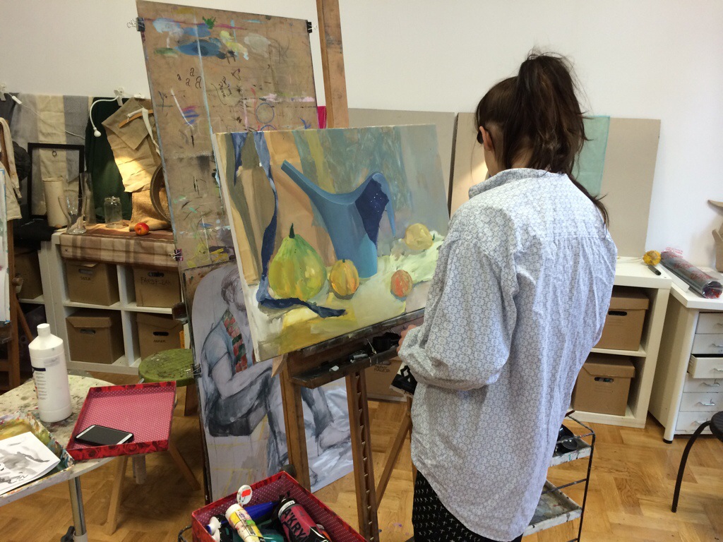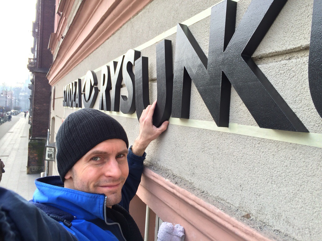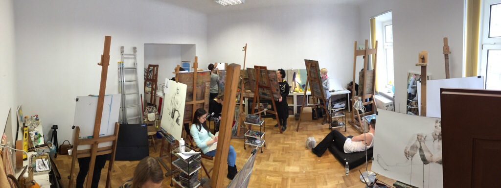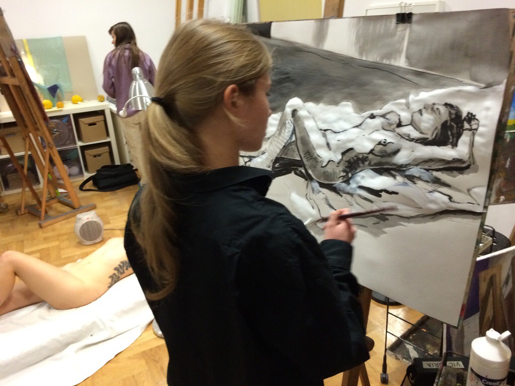 Dziś rano pracownia pełna. Rysunek postaci z modela wciągnął większość osób. Nic dziwnego – pozował Bartek 🙂 w tle przygotowana przez niego muzyka – Buckethead „Chicken noodles” i Brian Eno „Music for the airports” – oczywiście polecam! Wkrótce filmy z instruktażem rysunku postaci!
