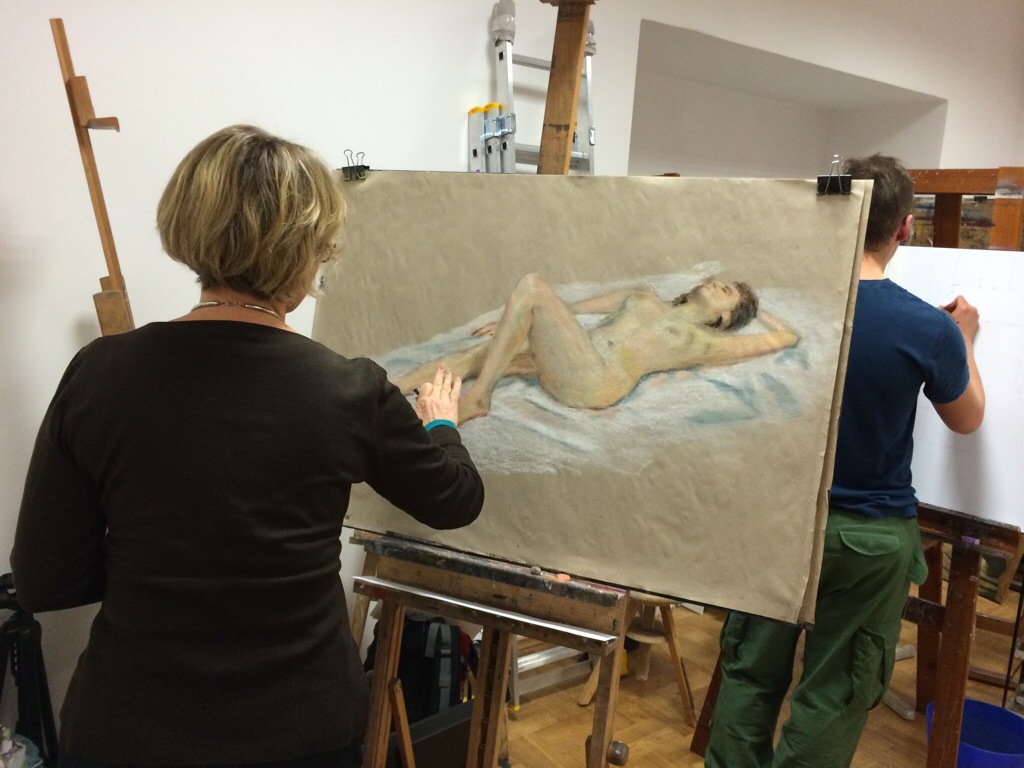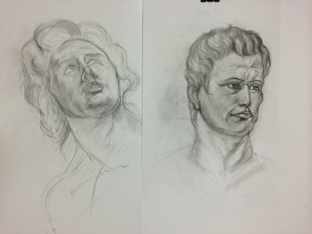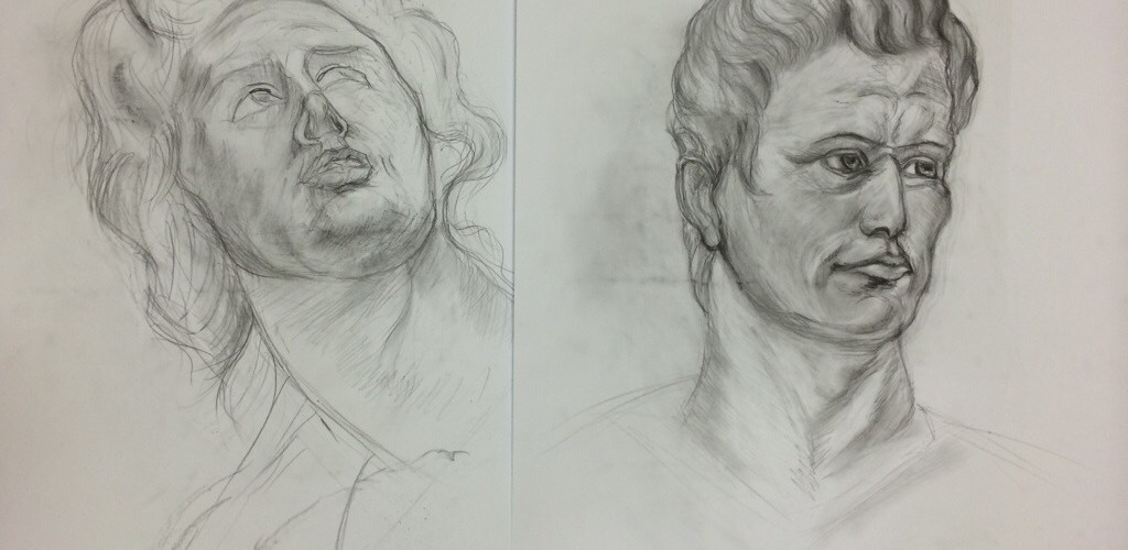 Pan Robert pracował dzisiaj nad głowami według rysunków studyjnych Rubensa. Skróty perspektywiczne i złożone cieniowania były głównymi wyzwaniami. Gratulacje za tą trudną próbę!