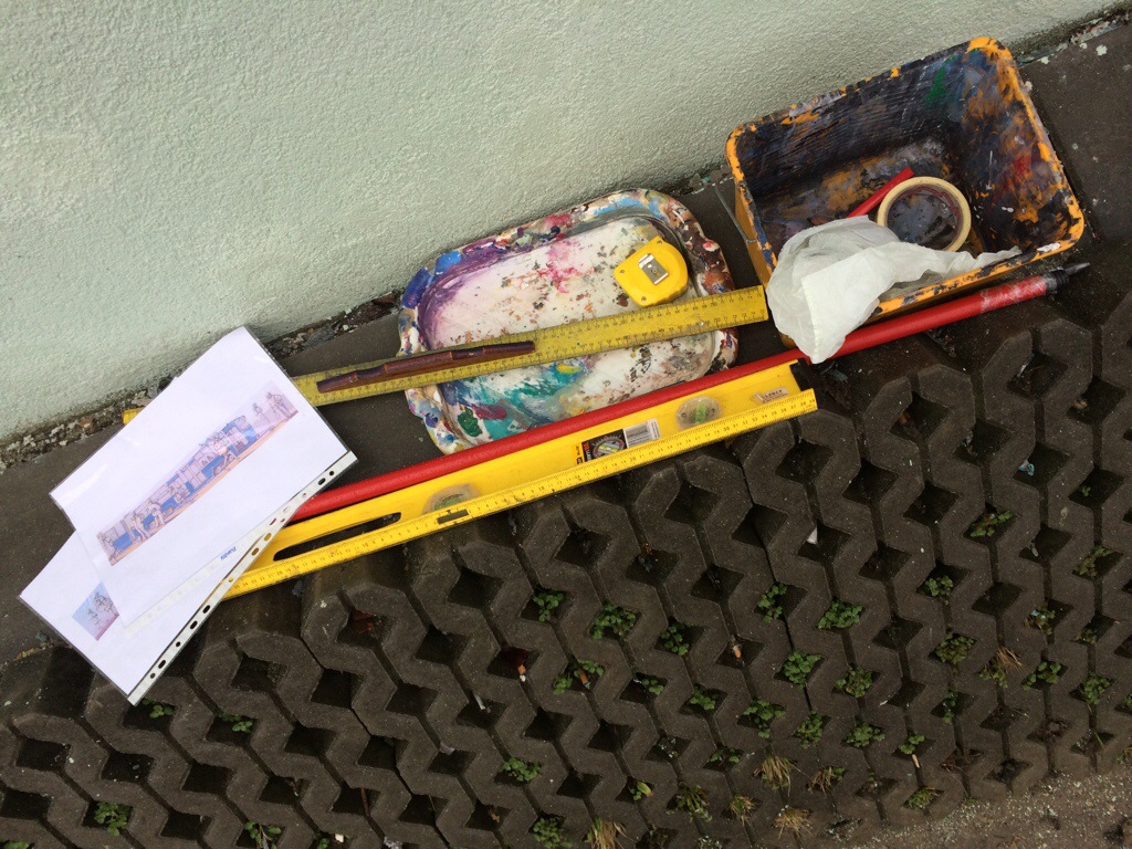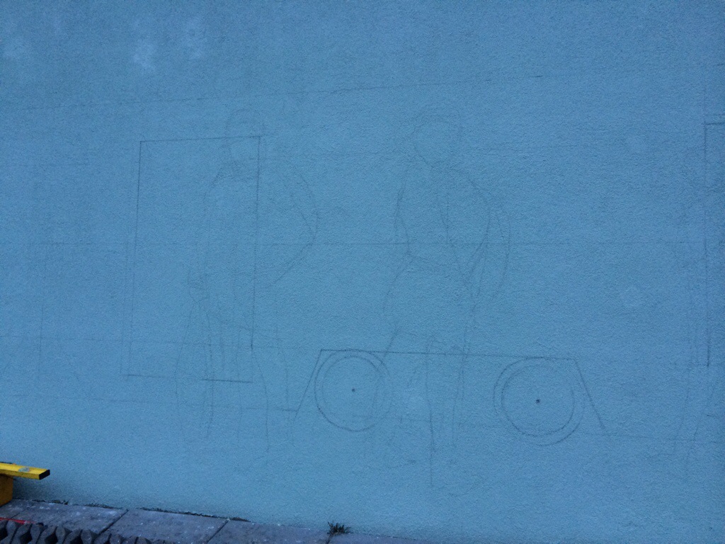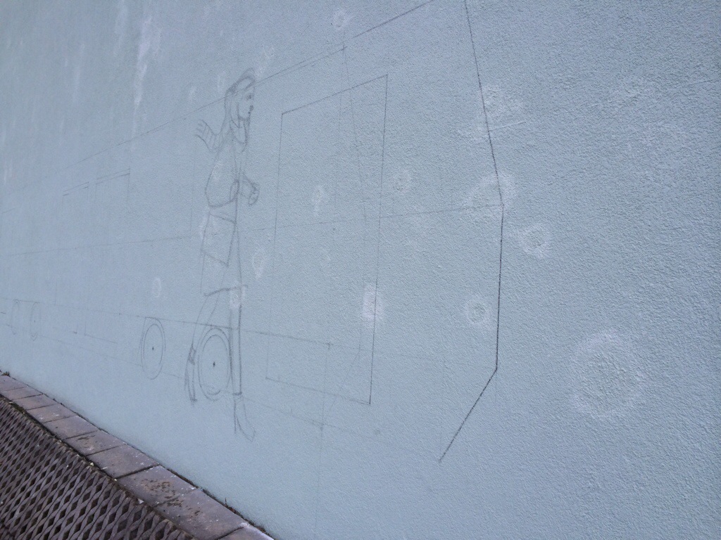 Dzisiaj rozpocząłem prace nad muralem 22 metrowej długości przy ul. Wielickiej w Krakowie. Wstępny szkic udał się, choć praca odbywała się w deszczu. Jutro ciąg dalszy prac – już poważniejszy. Oby pogoda dopisała 🙂 pozdrawiam! Tomek Wełna